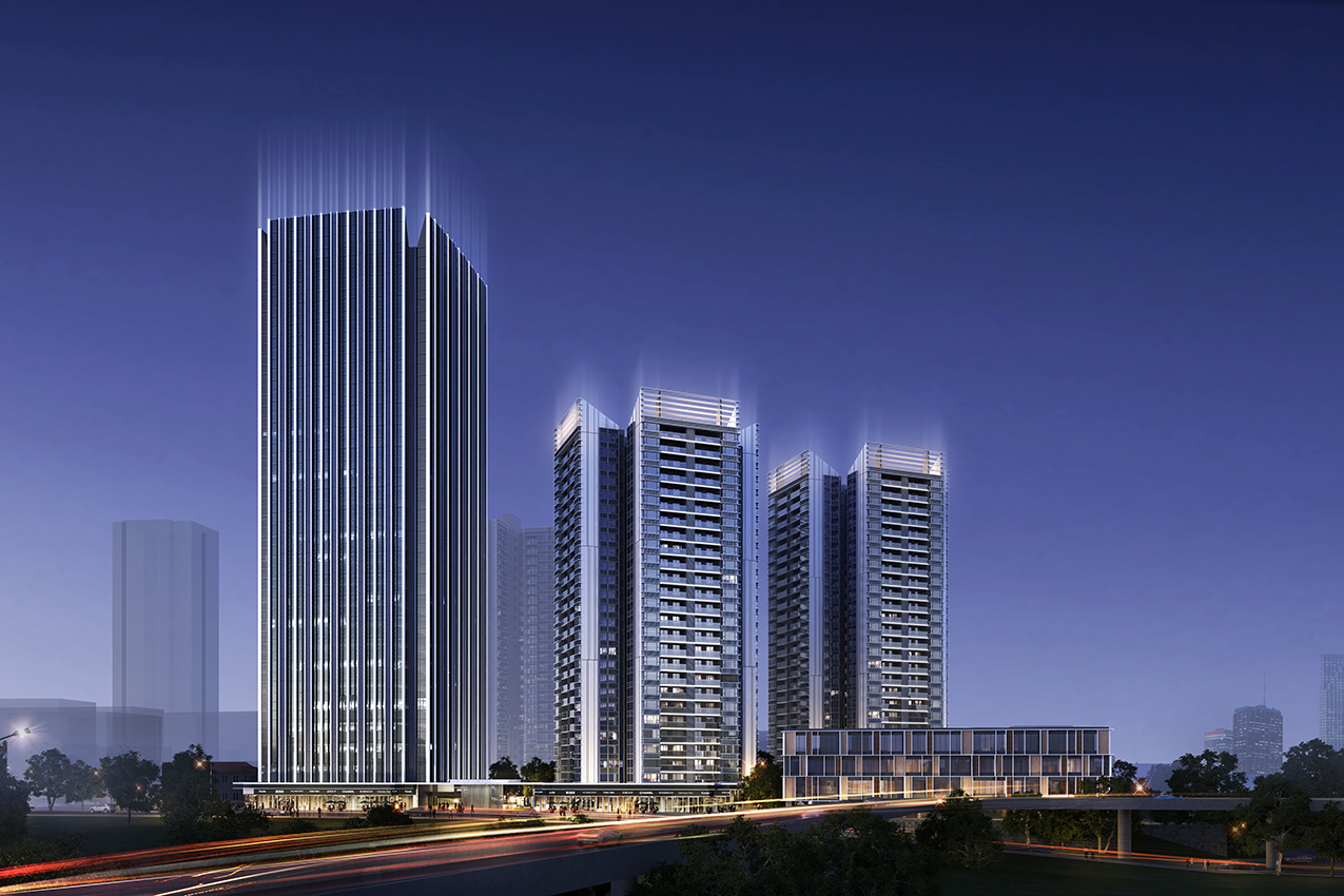 匯德里項目位于佛山市順德區(qū)北滘鎮(zhèn)美的大道以北、益豐路以西地塊,總建筑面積204085.12㎡,由五棟150m以內的超高層住宅塔樓組成,其中1座、2座、3座帶兩層商業(yè)裙房;10座為單層三合一環(huán)衛(wèi)設施,11座為兩層社區(qū)用房,兩層地下室。地塊周邊交通便利,東南側以及東南方向均有在建地鐵。地塊周邊配套完善,南側為順德未來城,東側為規(guī)劃待建學校用地及醫(yī)院,北側為待建居住用地,西側為已建成居住小區(qū),東南角為已建電站。
