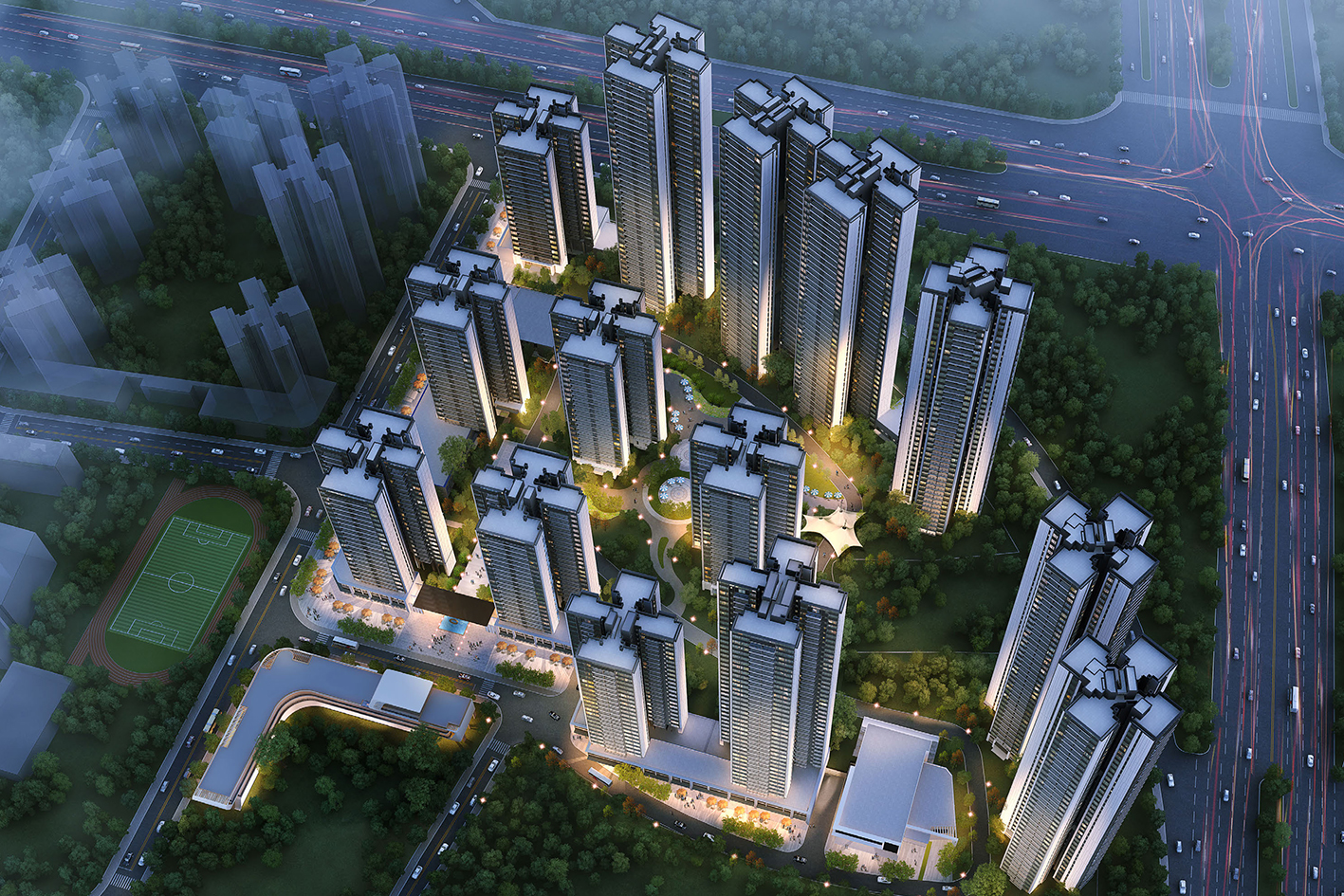 錦熙府項目毗鄰陳沙大道,建筑面積約為131573.52㎡,由1棟(32F)、2棟(17F)、3棟(17F)、4棟(32F)組成。